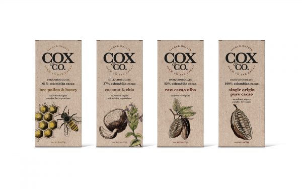 CasaLuker is a large Colombia-based family owned business that has now been an established chocolate manufacturer for 110 years. Invests in its farmers and communities and has developed environmental farming methods, meaning that Cox & Co could ensure all of its cacao was traceable and tasted incredible. Cox & Co not only tastes delicious, with fantastic natural flavour combinations, but it’s a bar of chocolate that you can feel good about.